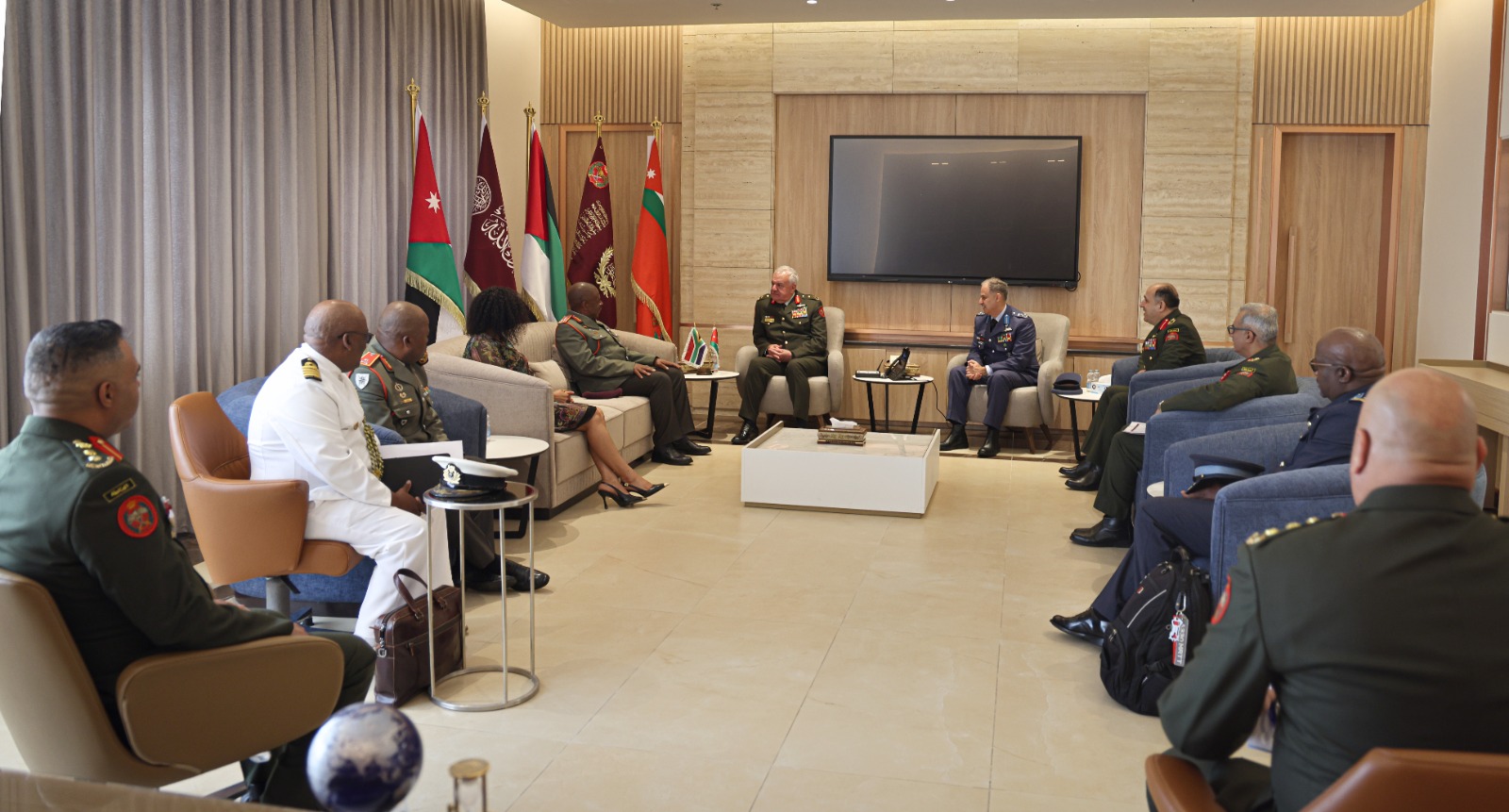 وبحث اللواء الركن الحنيطي مع الضيف بحضور سفيرة جنوب أفريقيا والملحق الدفاعي لدى المملكة، وعدد من كبار ضباط القوات المسلحة الأردنية، أوجه التعاون والتنسيق المشترك، وتبادل الخبرات في مجالات التدريب والتأهيل، وآخر المستجدات الإقليمية والدولية ذات الاهتمام المشترك، والتحديات الأمنية الراهنة.