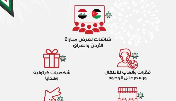 فعاليات احتفالية بالمناسبات الوطنية ومواقع مخصصة لبث مباراة الأردن والعراق
