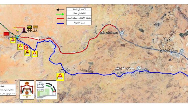 ووضعت الوزارة، بالتنسيق مع إدارة الدوريات الخارجية، مخططا للتحويلات المرورية لتنظيم حركة المرور خلال فترة التنفيذ، إذ سيتم تحويل حركة السير المتجه إلى عمّان باتجاه طريق النقب القديم، فيما يبقى السير على ما هو عليه للطريق المتجه إلى العقبة.