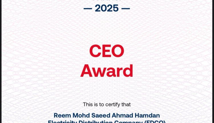 حصادنيوز – أعلنت شركة توزيع الكهرباء، أن مديرتها العامة المهندسة ريم حمدان فازت بجائزة الرئيس التنفيذي لعام 2025 (CEO Award)، ضمن جوائز المجلس البريطاني للسلامة الدولية (International Safety Awards)، في إنجاز يُعد من أبرز التكريمات العالمية الممنوحة للقيادات التنفيذية في مجال الصحة والسلامة المهنية.