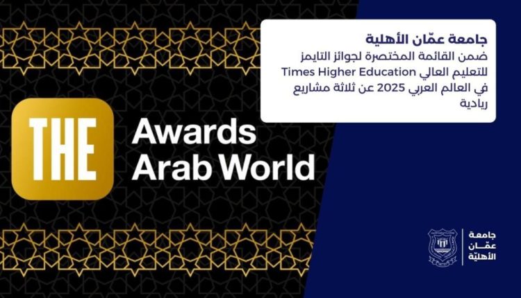 حصاد نيوز –في إنجاز جديد يعكس ريادتها الأكاديمية والبحثية، تأهلت جامعة عمّان الأهلية إلى القائمة المختصرة لجوائز “التايمز للتعليم العالي في العالم العربي”