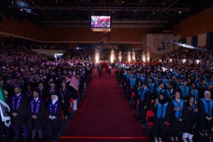 حصاد نيوز – رعت صاحبة السمو الملكي الأميرة أية بنت فيصل المعظمة مساء أمس 22-7-2025 على مسرح الأرينا احتفال اليوم الاول لجامعة عمان الاهلية بتخريج طلبتها للفصل الثاني 2024- 2025 من الفوج (32) لكليات ” الدراسات العليا ، الآداب والعلوم ، العلوم التربوية ، إدارة الضيافة والسياحة ، الحقوق ، الأعمال ” بحضور الدكتور ماهر الحوراني نائب رئيس مجلس الأمناء ورئيس هيئة المديرين للجامعة ونائبه السيد عمر الحوراني ، وعدد من أعضاء مجلس الأمناء ، والاستاذ الدكتور ساري حمدان رئيس الجامعة ونائبه الاستاذ الدكتور أحمد حمدان ومساعد الرئيس للشؤون الادارية والتطوير المؤسسي الدكتورإياد شعبان والسادة العمداء وأعضاء الهيئة التدريسية وعدد من أعضاء الهيئة الإدارية وحشد كبير من ذوي الطلبة الخريجين والمدعوين .