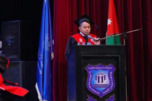 وخاطب الخريجين والخريجات قائلا : أنتم تخرجتم من أول جامعة خاصة أردنية أصبحت عالمية وتسعى الى التميز بالتصنيفات الدولية، افتخروا أنكم تخرجتم من جامعة تصنيفها الأولى على الجامعات الخاصة في الأردن بتصنيف ال QS و ال TIMES وافتخروا أن جامعتكم هي الجامعة التي صنفت في المركز 761 – 770 عالمياً في تصنيف ال QS وصنفت 601 – 800 في تصنيف ال TIMES وجاءت في المرتبة 28 عربياً .