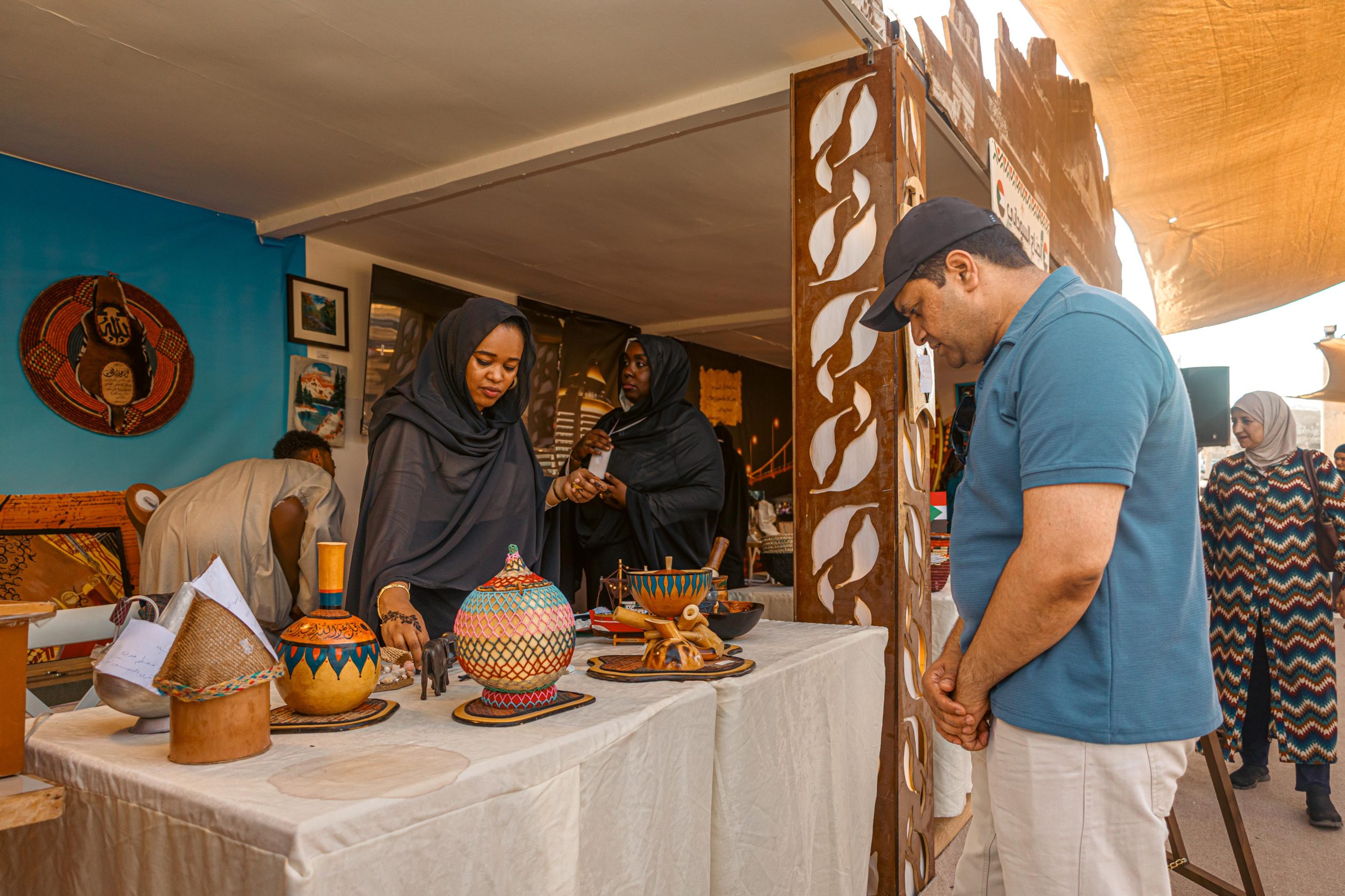 وفي جناح السودان نتعرف على المأكولات والأزياء الشعبية واللوحات التي تعبر عن الحياة السودانية. كما أخبرتنا الدكتورة منال دهب.