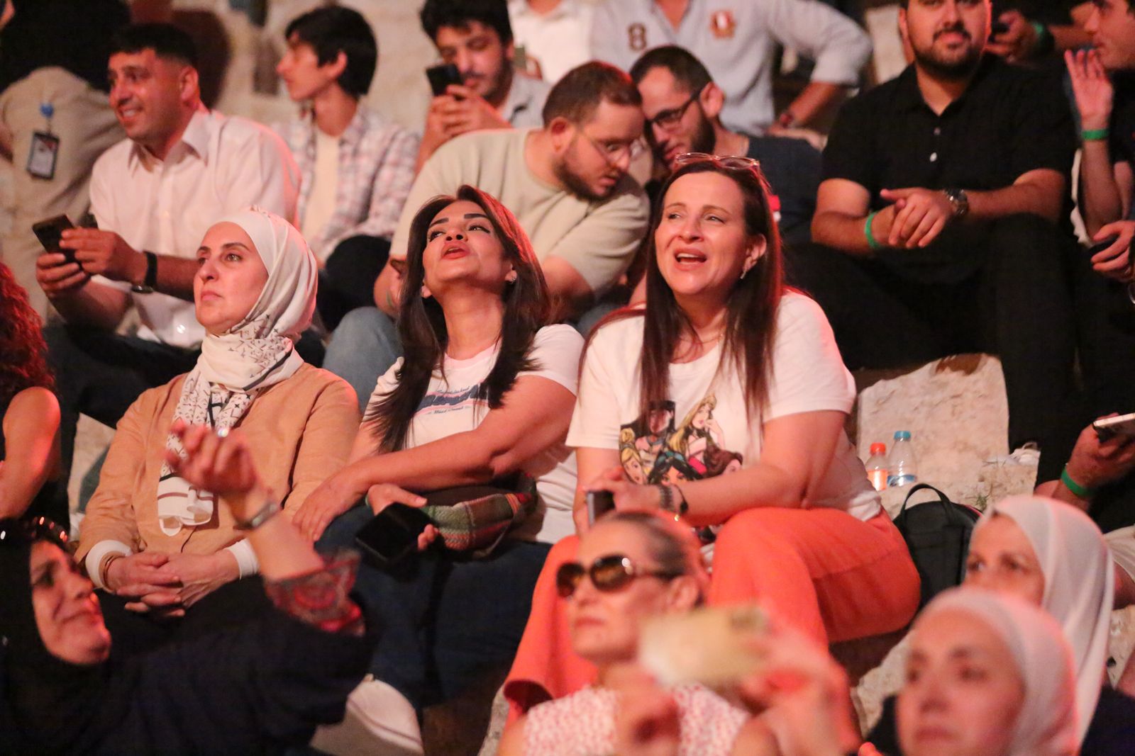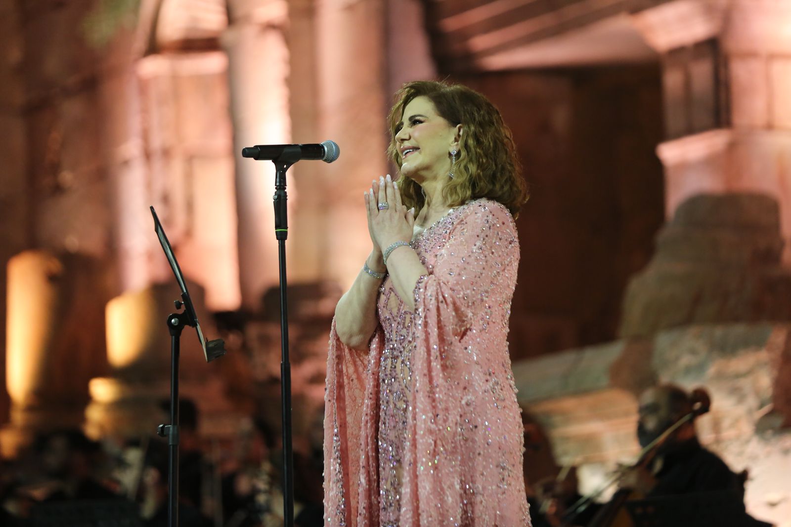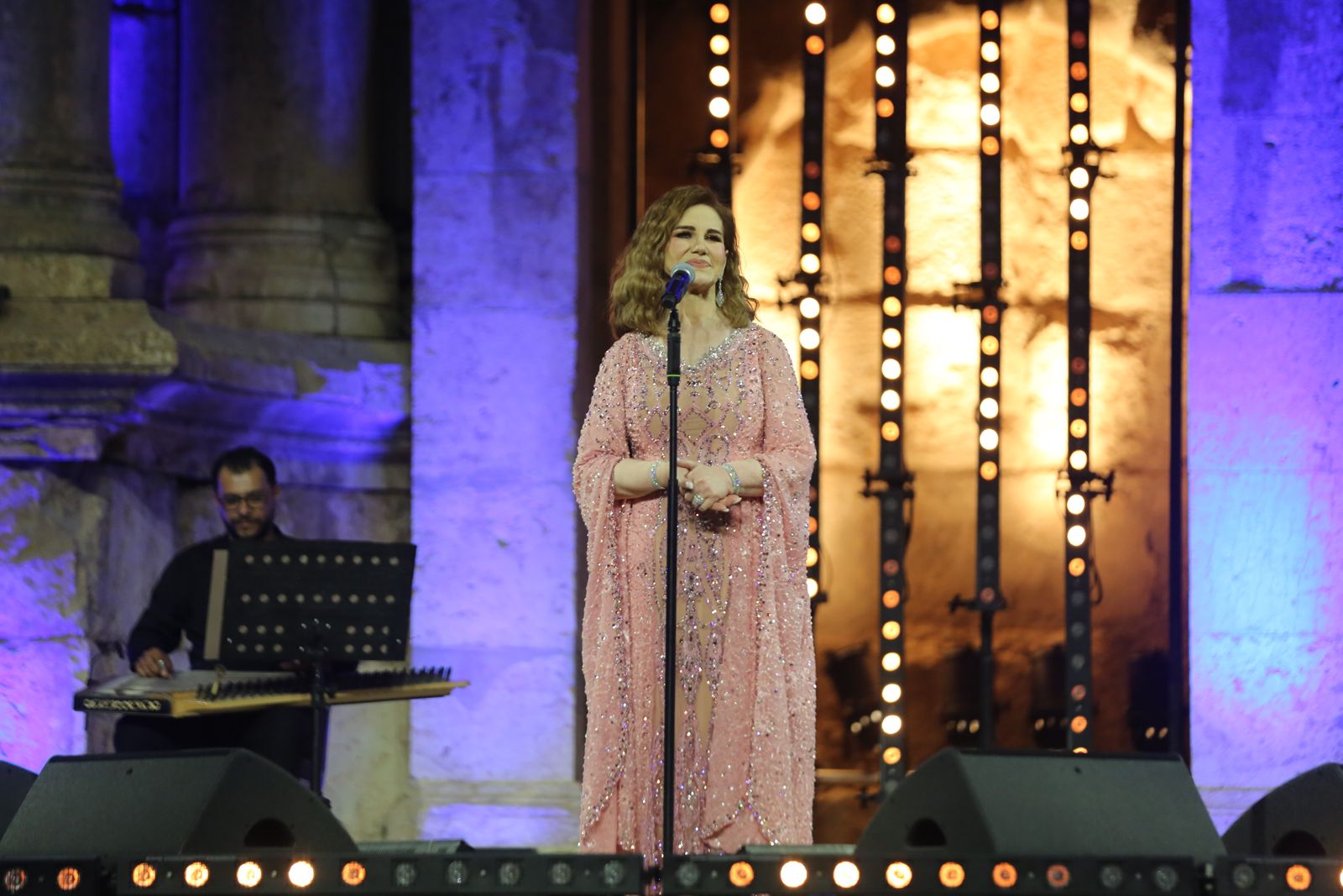 رافقتها في الأمسية الفرقة الموسيقية الأردنية بقيادة المايسترو الدكتور هيثم سكرية، حيث افتتحت الحفل بأغنية “هي الليالي كده”، من كلمات عبد الرحمن الأبنودي وألحان عمار الشريعي، لتأسر قلوب الحضور منذ اللحظات الأولى.