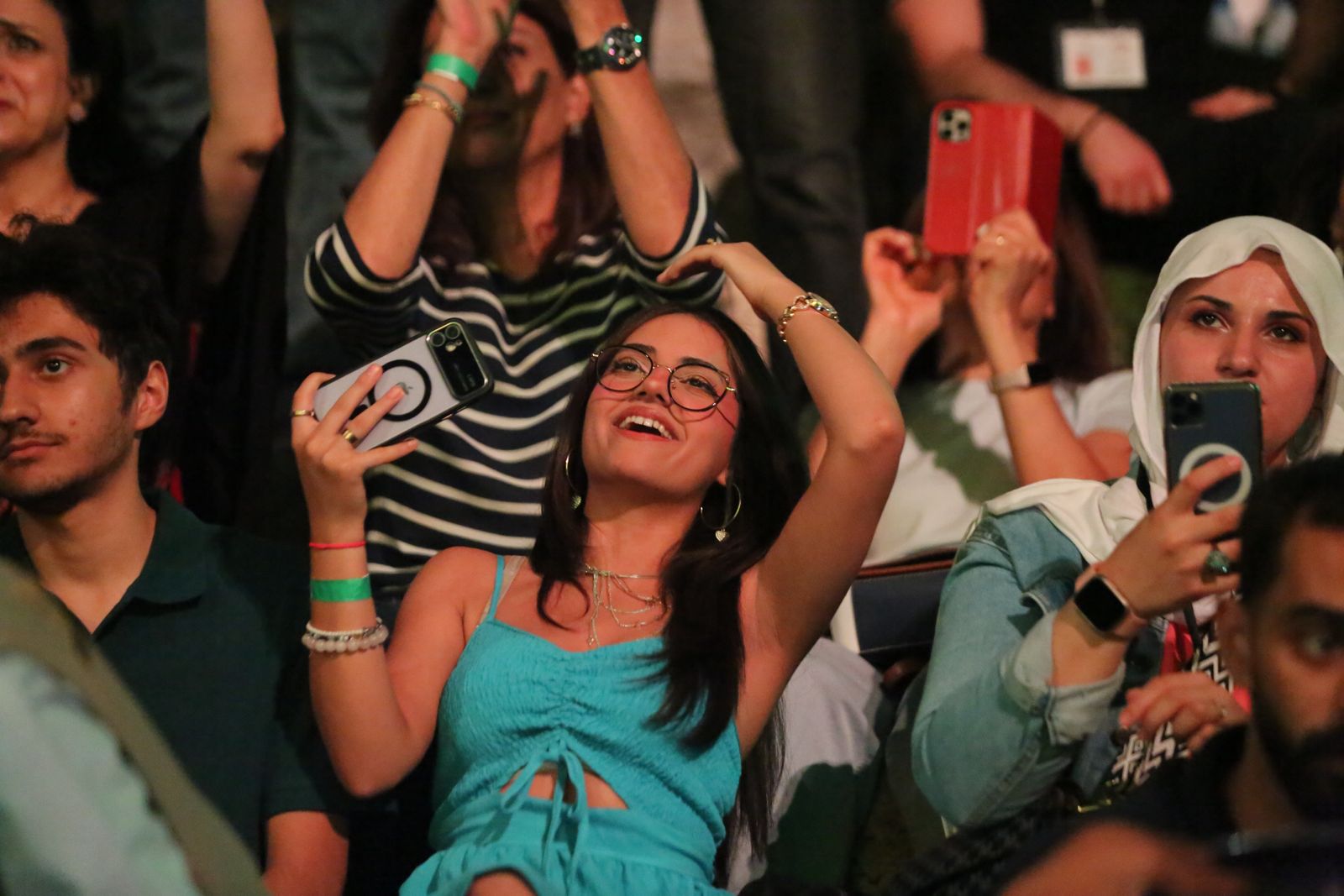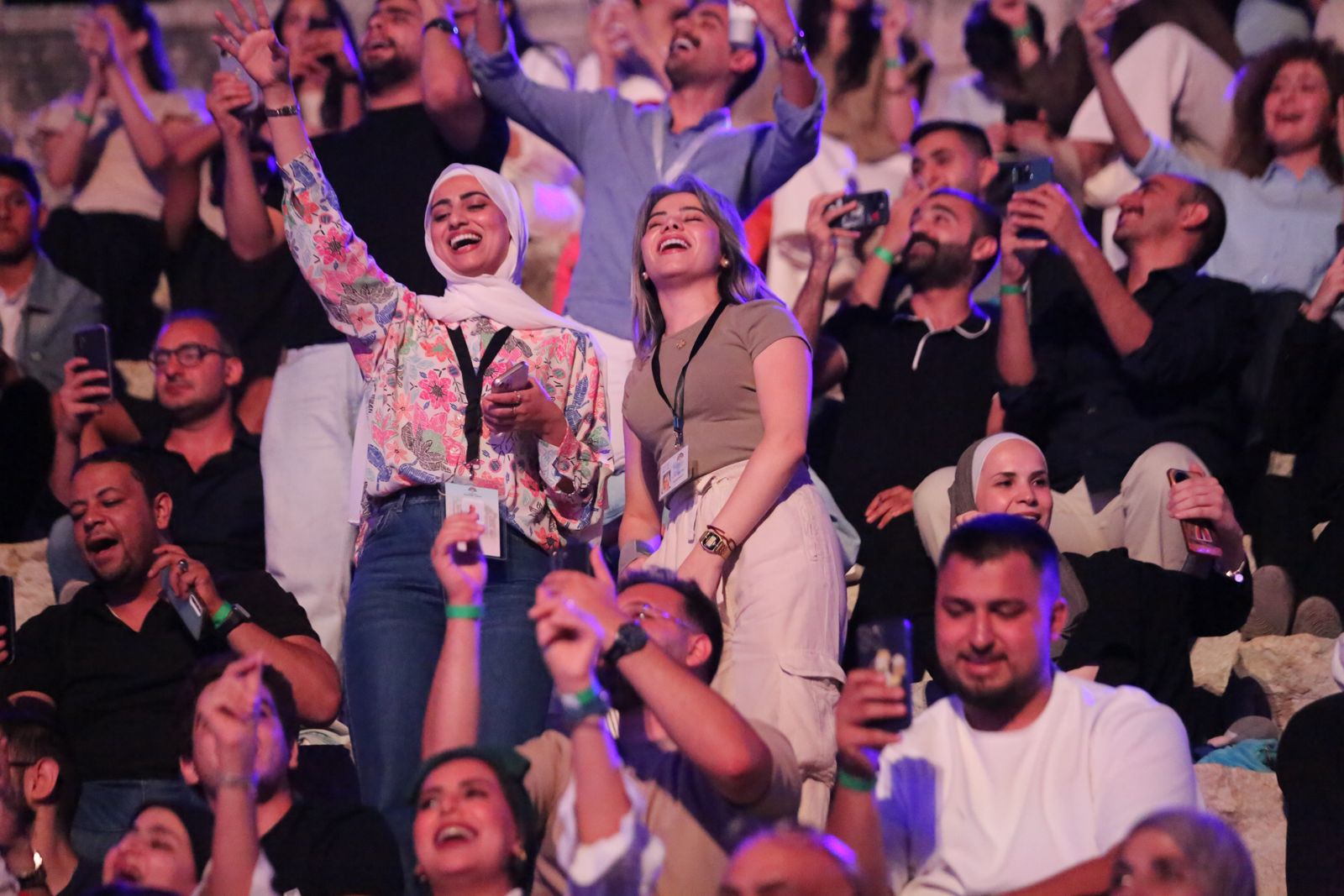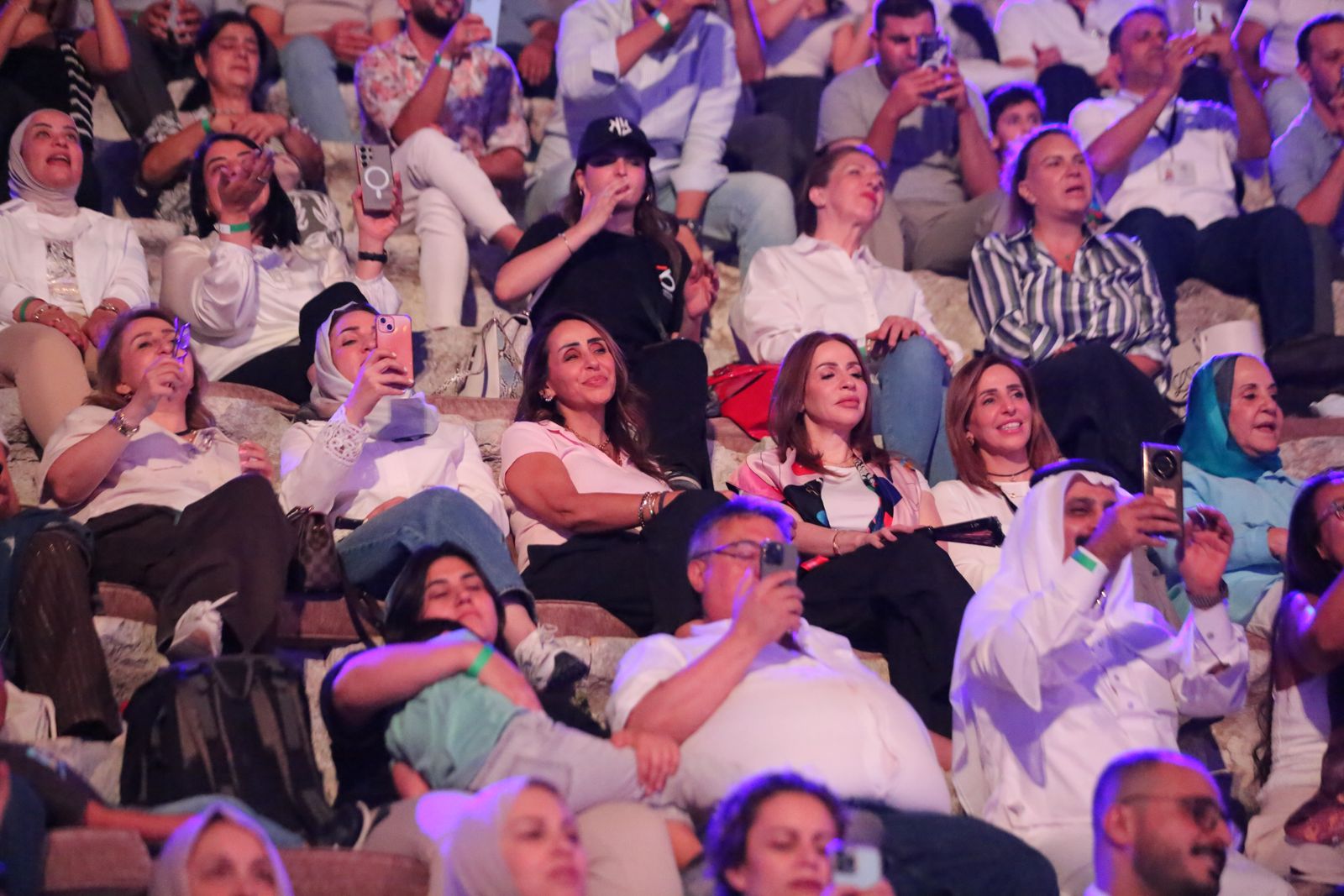 رافقتها في الأمسية الفرقة الموسيقية الأردنية بقيادة المايسترو الدكتور هيثم سكرية، حيث افتتحت الحفل بأغنية “هي الليالي كده”، من كلمات عبد الرحمن الأبنودي وألحان عمار الشريعي، لتأسر قلوب الحضور منذ اللحظات الأولى.