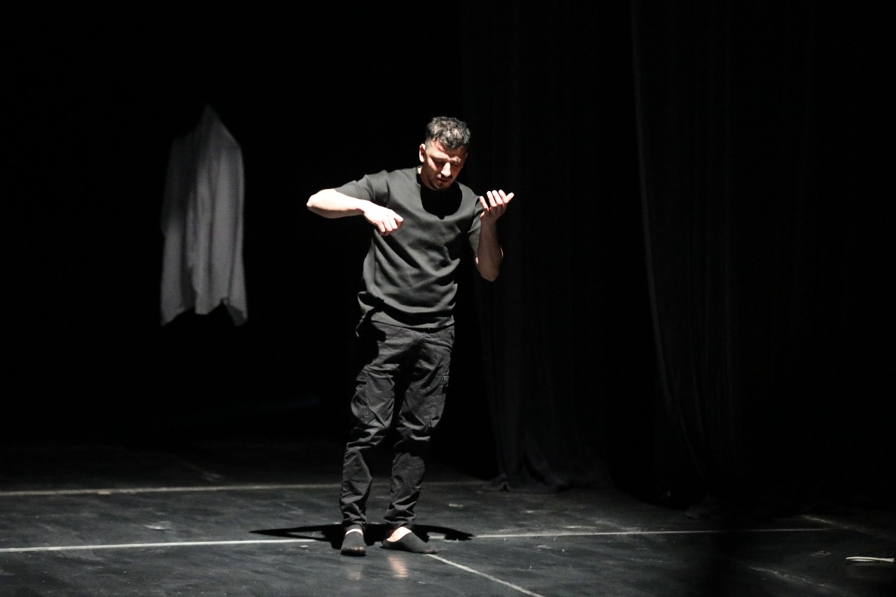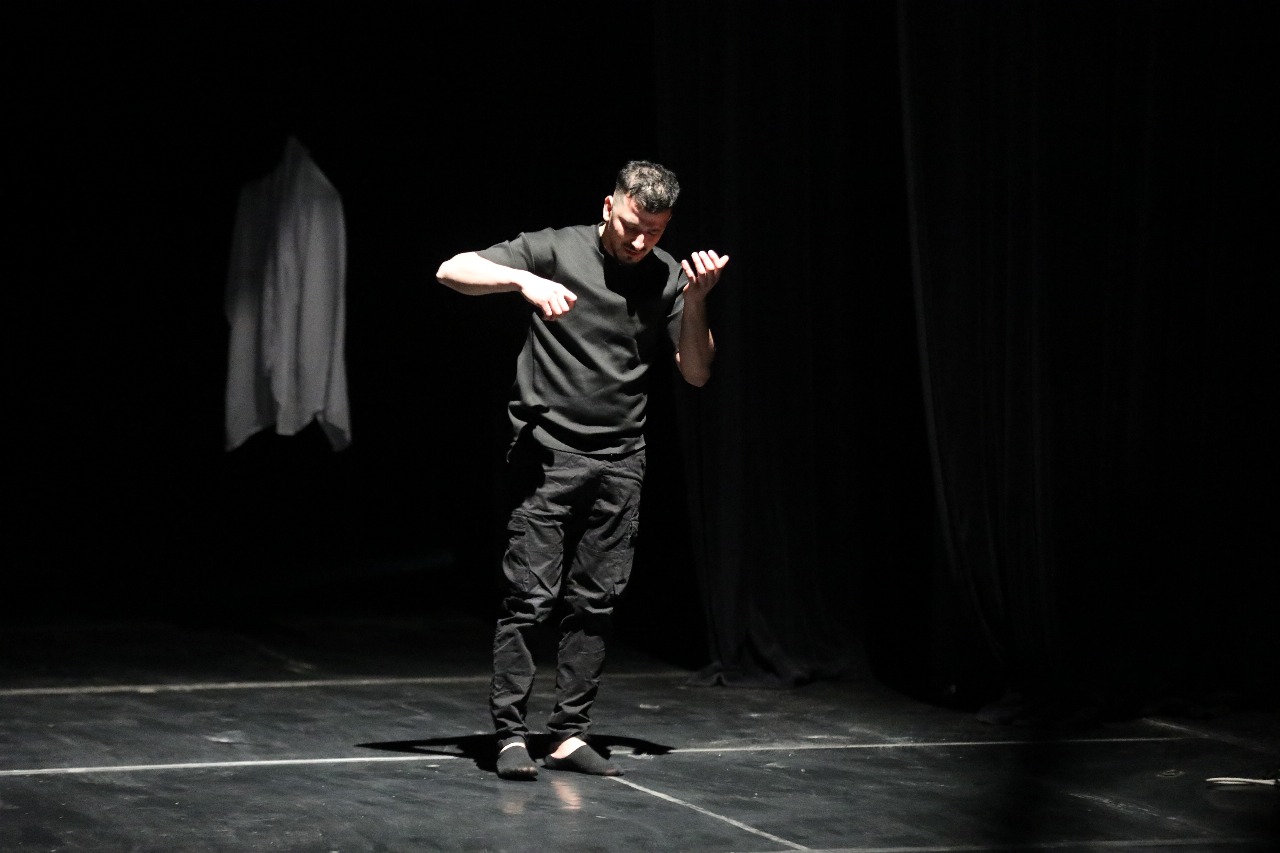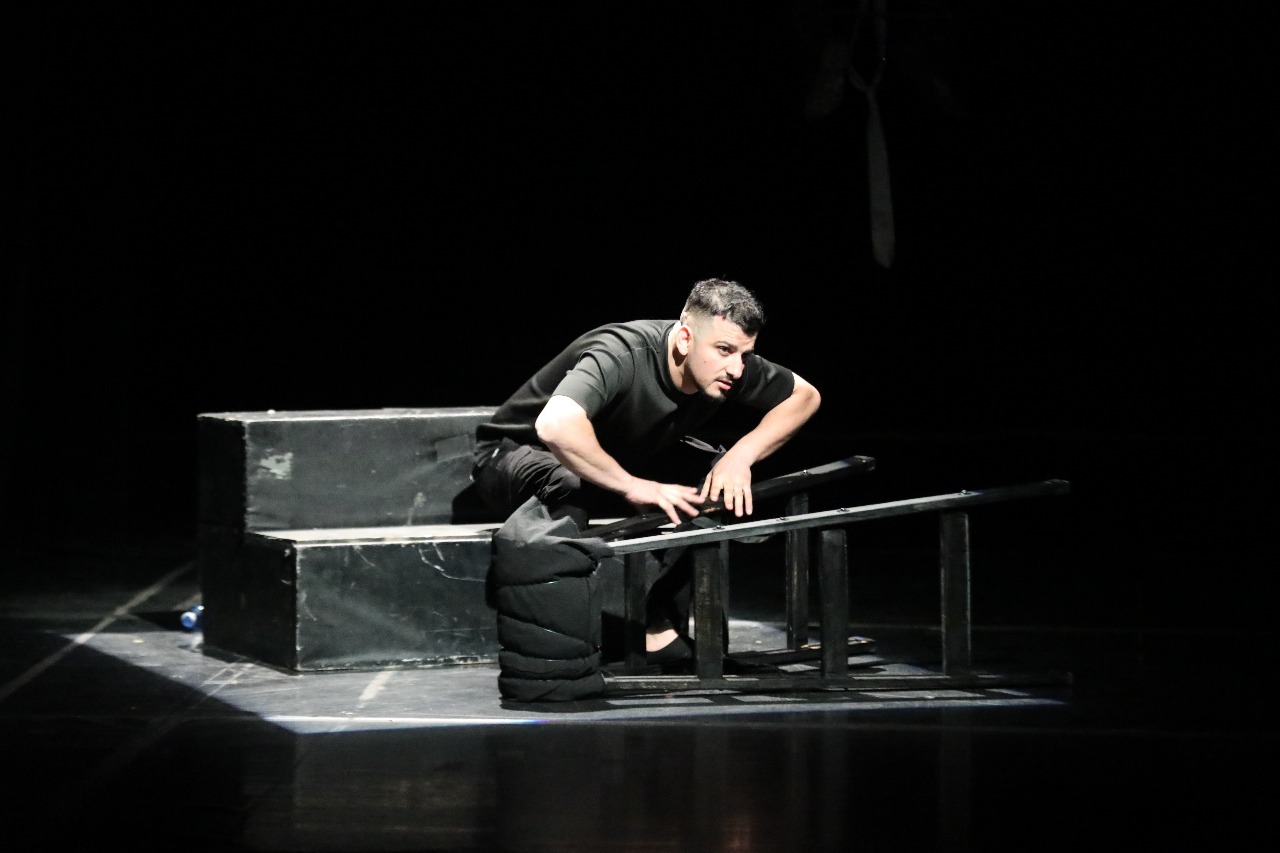 العرض الذي قدّمه الفنان الشاب ثائر ظاهر، تناول شخصية “ياسر”، الطفل الذي شبّ بين أحضان الأرض الزراعية، تاركًا مقاعد الدراسة مُبكرًا ليعيل أسرته، ثم شابًا يقاوم الاحتلال في مخيم جنين، وصولًا إلى لحظة أسره بعد إصابته. في هذه الرحلة، جسّد ظاهر أكثر من شخصية، متنقّلًا بين الأب، والأم، والمعلم، والمناضل، عبر أدوات بسيطة وذكية مثل الجاكيت، النظارات، البسطار، والشال، التي تدل على التبدّل السريع في الأدوار والانفعالات.