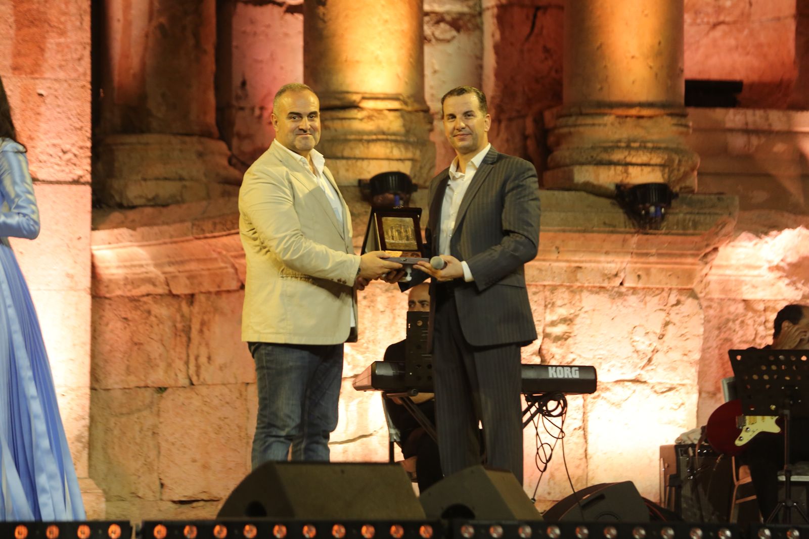 وتم تكريم الفنان نجم السلمان من قبل نقيب الفنانين ومدير المهرجان.