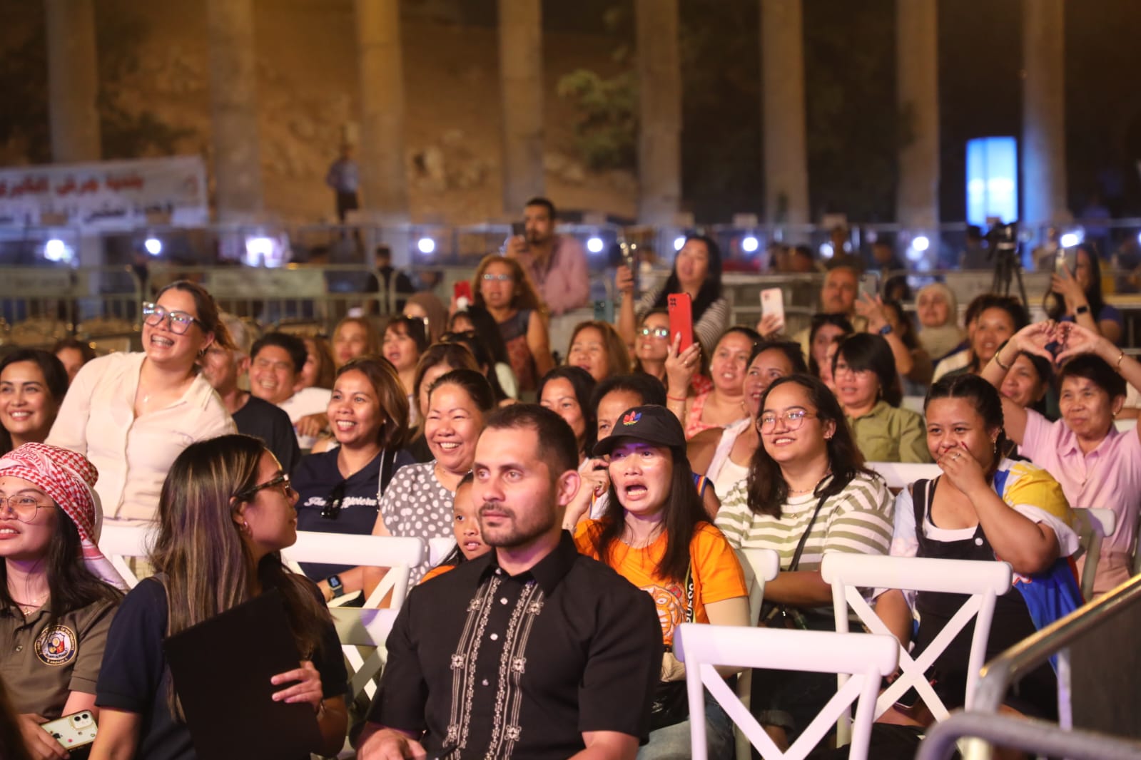 والبسمة التي زينت وجوه اعضاء الفرقة الفلبينية رسمت البهجة والسرور على مسرح الساحة الرئيسية وخلقت أجواء حماسية.