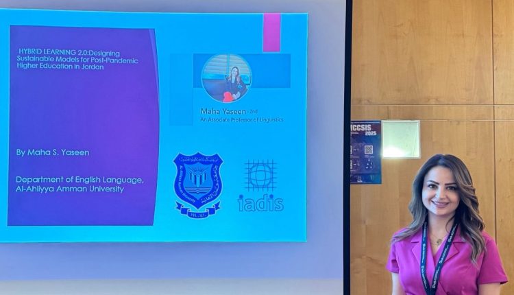 وقدمت الدكتورة ياسين خلال المؤتمر ورقتها البحثية المحكمة بعنوان: “Hybrid Learning 2.0: Designing Sustainable Models for Post-Pandemic Higher Education in Jordan”