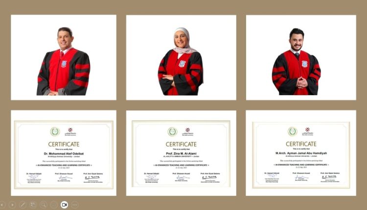 حصادنيوز – في إطار سعي جامعة عمّان الأهلية لتعزيز كفاءة كوادرها الأكاديمية وتبني أحدث الاتجاهات في تطوير التعليم، وبدعم سخي من الجامعة، شارك مجموعة من أعضاء هيئة التدريس في البرنامج المتقدم “شهادة التدريس والتعلّم المُعزّز بالذكاء الاصطناعي”، الذي نظمه اتحاد الجامعات العربية وجامعة أبو ظبي .