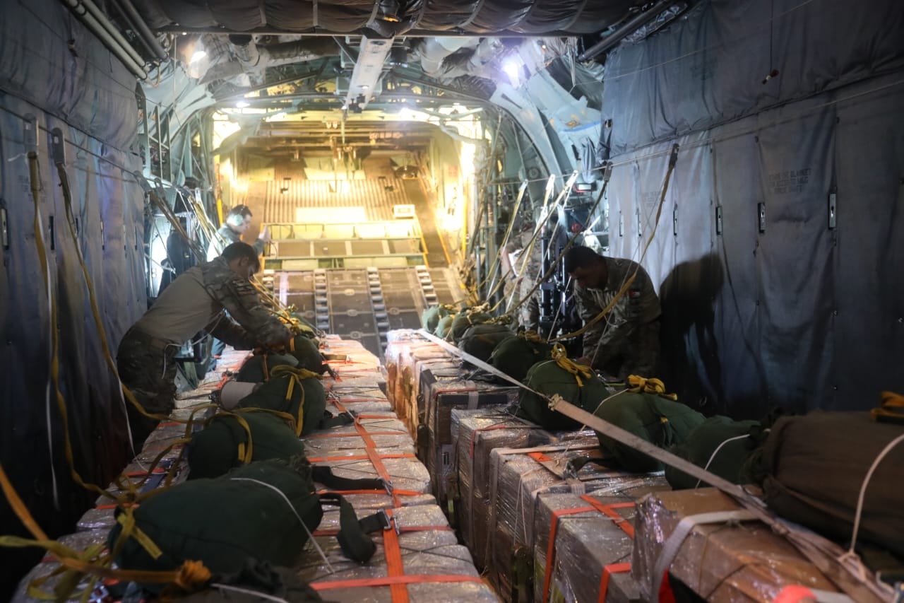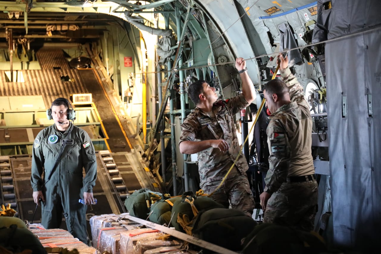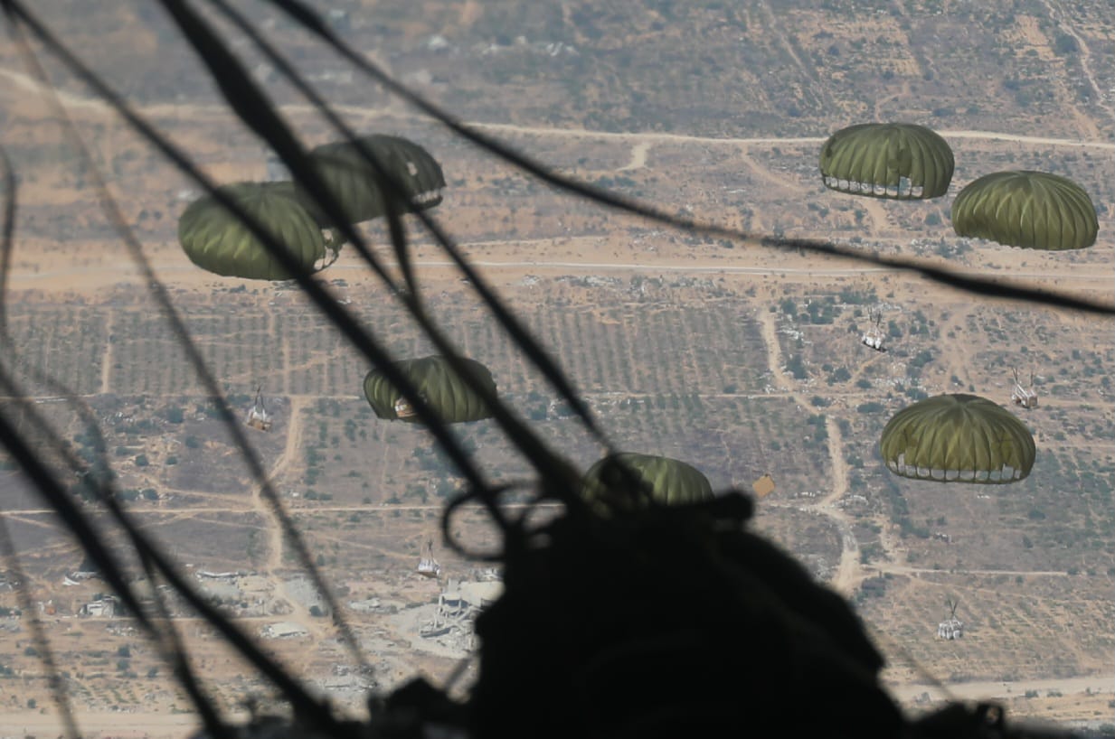 حصادنيوز – نفذت القوات المسلحة الأردنية، اليوم الخميس، عملية إنزال جوي إلى قطاع غزة، شاركت في العملية بالإضافة إلى طائرات سلاح الجو الملكي الأردني، طائرات من كل من جمهورية ألمانيا الاتحادية و دولة الإمارات العربية المتحدة و مملكة بلجيكا و جمهورية فرنسا وجمهورية إيطاليا، حيث تم إسقاط نحو (74) طناً من المواد الغذائية والإغاثية داخل القطاع.