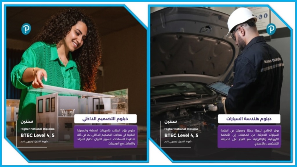 * شهادات Pearson BTEC معترف بها في أكثر من 70 دولة، وتفتح أمامك الأبواب للعمل مباشرة بعد التخرج، أو استكمال درجة البكالوريوس في المملكة المتحدة خلال عام واحد فقط بعد الدبلوم .