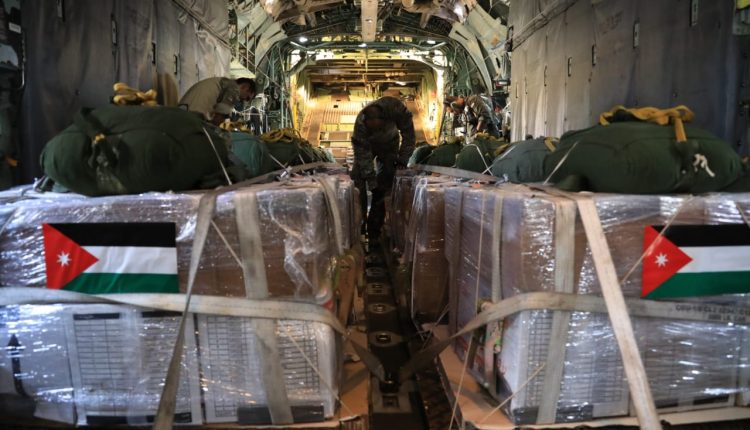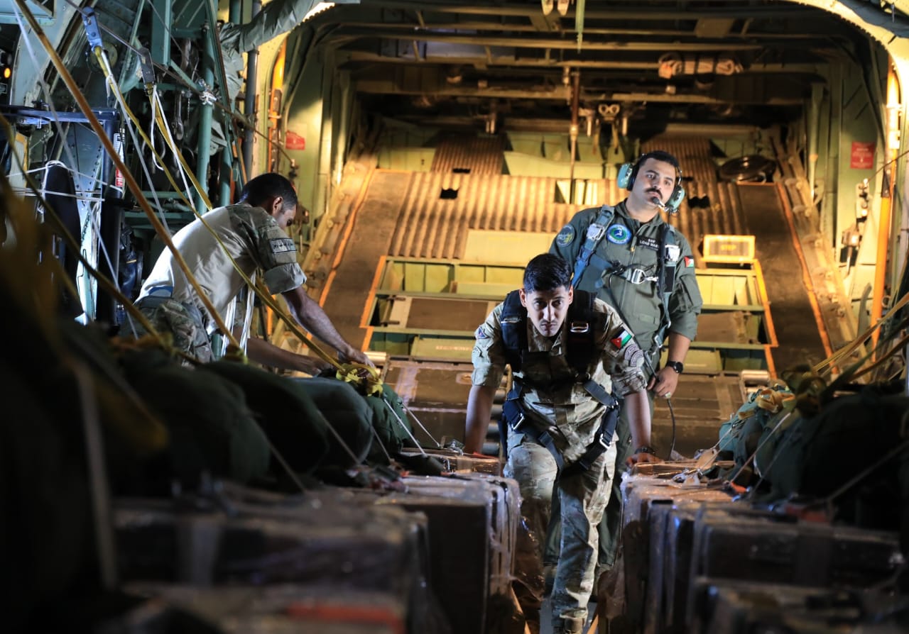 حصادنيوز – نفذت القوات المسلحة الأردنية، اليوم الاحد، عملية إنزال جوي إلى قطاع غزة، شاركت في العملية طائرات سلاح الجو الملكي الأردني وكل من جمهورية ألمانيا الاتحادية ودولة الإمارات العربية المتحدة وجمهورية اندونسيا، حيث تم إسقاط نحو ( 41) طناً من المواد الغذائية والإغاثية داخل القطاع.