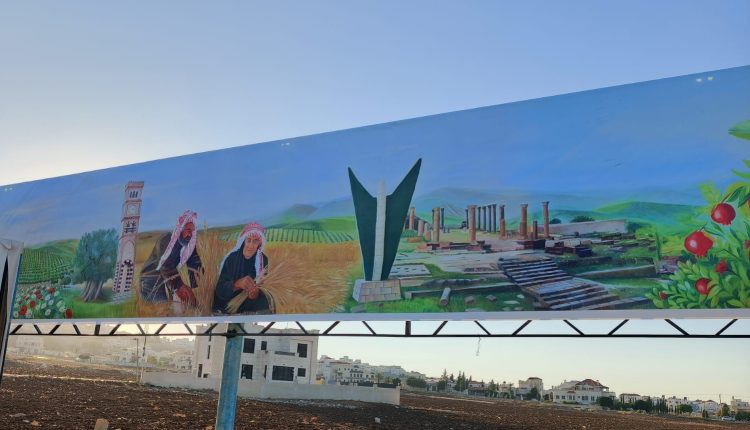 حصادنيوز – أنجز الفنان محمد هزايمة والفنانة مرام حسن من جمعية الدار للثقافة والفنون “جدارية إربد” بالألوان الزيتية، وذلك بدعم من وزارة الثقافة وبإشراف مباشر من مديرية ثقافة محافظة اربد وبالتعاون مع بلدية بني عبيد.