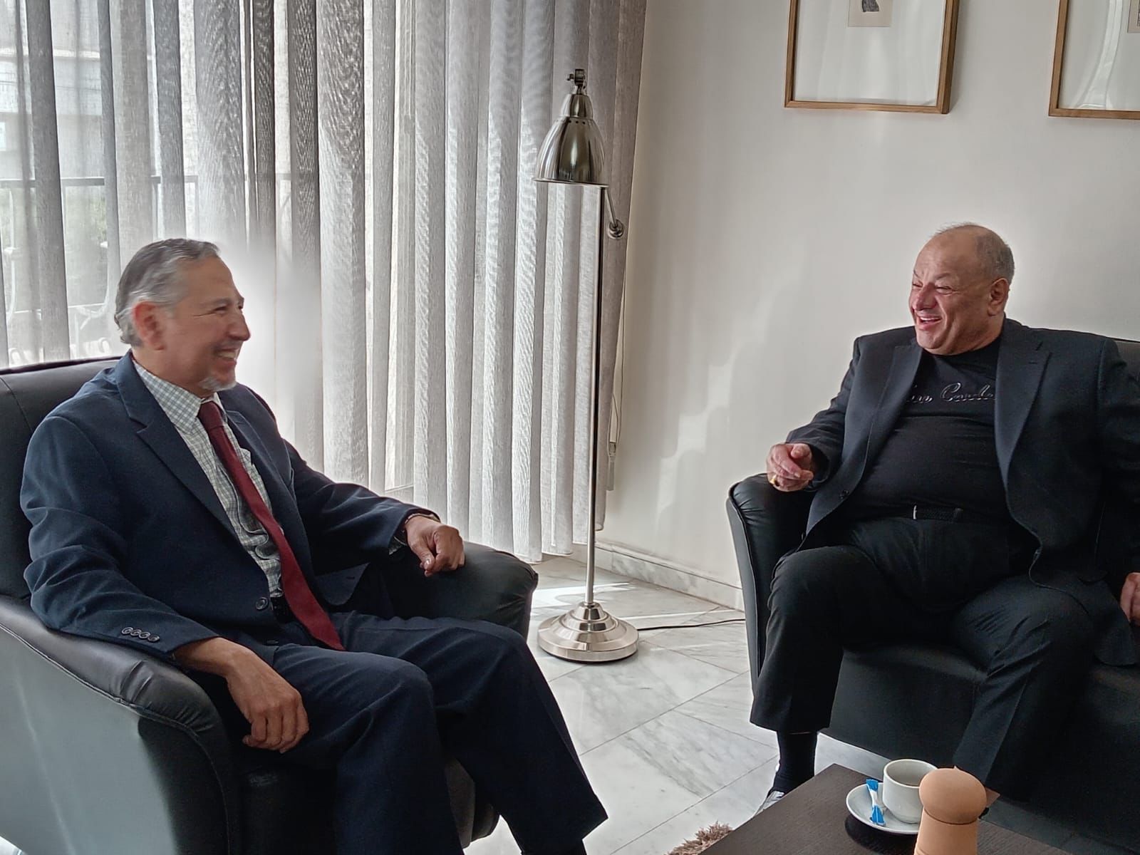 حصادنيوز – يواصل المدير التنفيذي لمهرجان جرش للثقافة والفنون ايمن سماوي بعقد اللقاءات مع السفراء المعتمدين لدى الديون الملكي الهاشمي ، حيث التقى سماوي صباح اليوم الأحد بالسفير المكسيكي جاكوب برادو ، وجرى خلال اللقاء بحث مشاركة المكسيك في دورة المهرجان الـ 40 ، لتقديم عروض ثقافية وفلكلورية وفنية ، في إطار توطيد العلاقات الثنائية والتقارب بين الشعبين الأردني والمكسيكي .