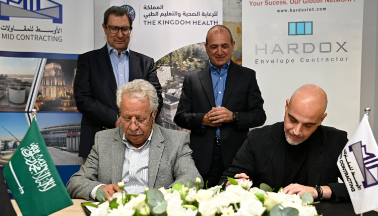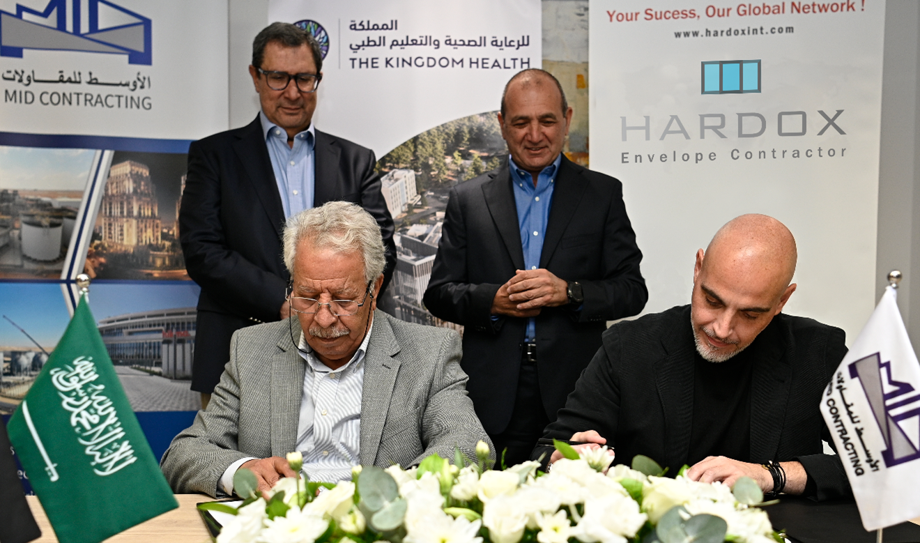 وقد جاء هذا الإعلان إثر توقيع اتفاقية لمشروع المملكة للرعاية الصحية والتعليم الطبي، بين كل من شركة الشرق الاوسط للمقاولات، التي تتولى تنفيذ أعمال التشطيبات المعمارية والتجهيزات الداخلية للمشروع، بوصفها المقاول الرئيسي بموجب اتفاقية موقعة مسبقاً، وبين شركة هاردوكس، التي ستتولى بدورها تنفيذ أعمال الواجهات الخارجية بوصفها مقاولاً فرعياً، والتي تعد إحدى أبرز الشركات السعودية الرائدة في مجال أنظمة الواجهات المعمارية وأعمال الزجاج في منطقة الشرق الأوسط.