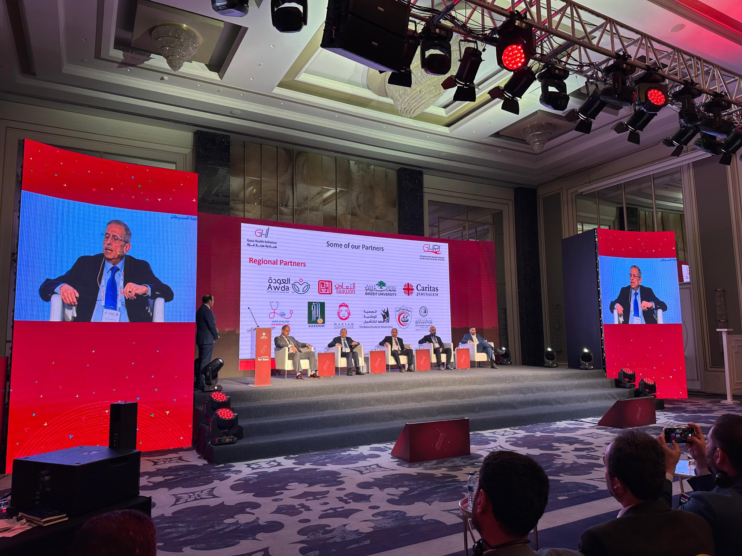 وخلال كلمته، استعرض الحموري جهود مبادرة صحة غزة في دعم القطاع الصحي الفلسطيني، عبر تنفيذ مشاريع إغاثية وطبية بالشراكة مع مؤسسات من الأردن وعدد من دول العالم، مشيراً إلى عملية إخلاء الأطفال الجرحى والمرضى من قطاع غزة لتلقي العلاج في المستشفيات الأردنية الخاصة، والتي جاءت بتوجيهات من جلالة الملك عبدالله الثاني لإخلاء 2000 طفل.