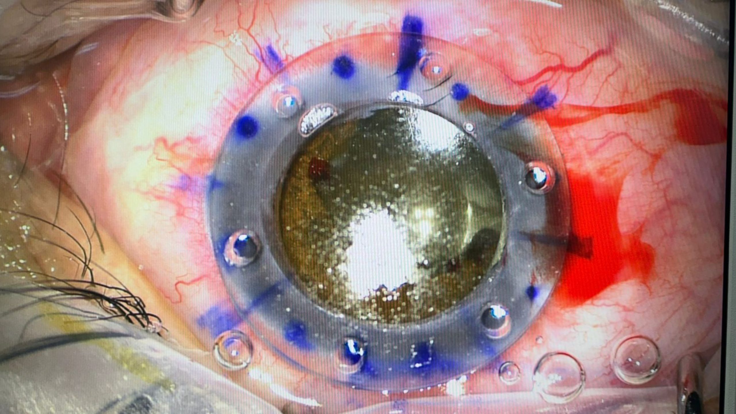 وبين أنه تم إزالة القرنية المصابة وزراعة عدسة خاصة تم تثبيتها في الحجرة الخلفية للعين ومن ثم زراعة قرنية صناعية مؤقتة.