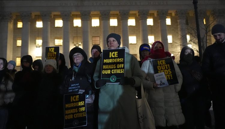 ومنذ 7 يناير/ كانون الثاني الجاري، تشهد مدن أمريكية عدة احتجاجات واسعة ضد العنف المميت الذي تستخدمه إدارة إنفاذ قوانين الهجرة والجمارك في حملتها ضد المهاجرين التي قتل فيها مواطنان بمدينة مينيابوليس في ولاية مينيسوتا.