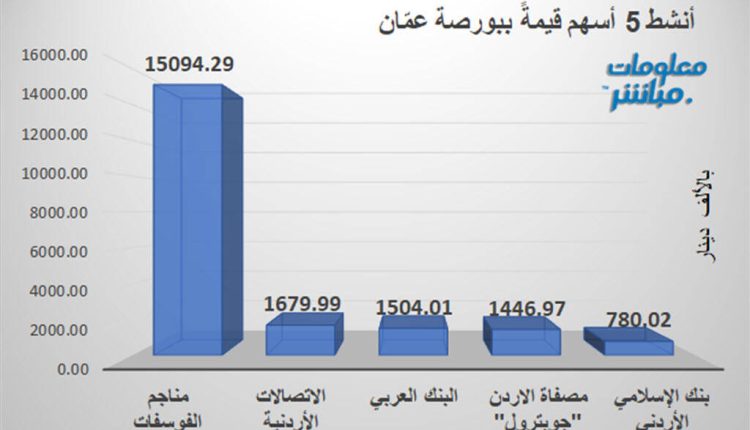 مناجم الفوسفات يتصدر الأنشط قيمة وحجماً في بورصة عمّان جلسة الاثنين