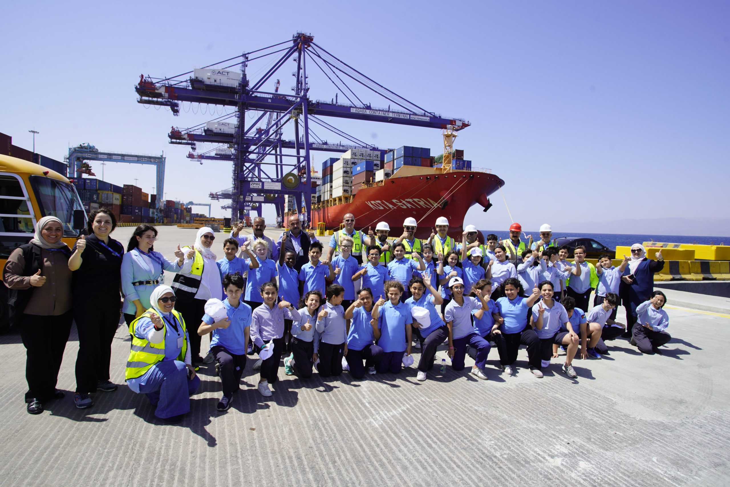 وفي سياق الالتزام بالسلامة وتعزيزها على نحو يشمل المجتمع المحلي، استضافت الشركة عدداً من طالبات وطلاب مدرسة العقبة الدولية في إطار زيارة توعوية خاصة، هدفت إلى تعريف الأجيال الشابة بأهمية السلامة في بيئة العمل وبالممارسات التشغيلية المسؤولة التي تنتهجها. وقد أتيح للطلبة فرصة الاطلاع المباشر على عمليات ميناء الحاويات، والتعرف على مبادئ الصحة والسلامة وتعلمها على أرض الواقع ضمن بيئة عمل حقيقية.