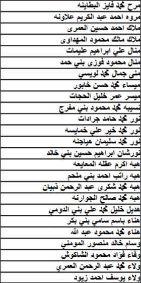حصاد نيوز – أعلنت لجنة البعثات في القيادة العامة للقوات المسلحة الاردنية – الجيش العربي/مديرية التربية والتعليم والثقافة العسكرية أسماء الطلبة المرشحين للدراسة في كليات المجتمع الحكومية للعام الدراسي 2016/2017.