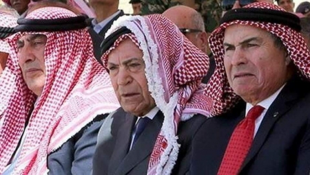 فتواجد رئيس الوزراء د.هاني الملقي، و بجواره رئيس مجلس الأعيان بالوكالة د.معروف البخيت، وبجوارهم م.عاطف الطراونة رئيس مجلس النواب ، فيما كان جميعهم يلبس الشماغ الاردني .
