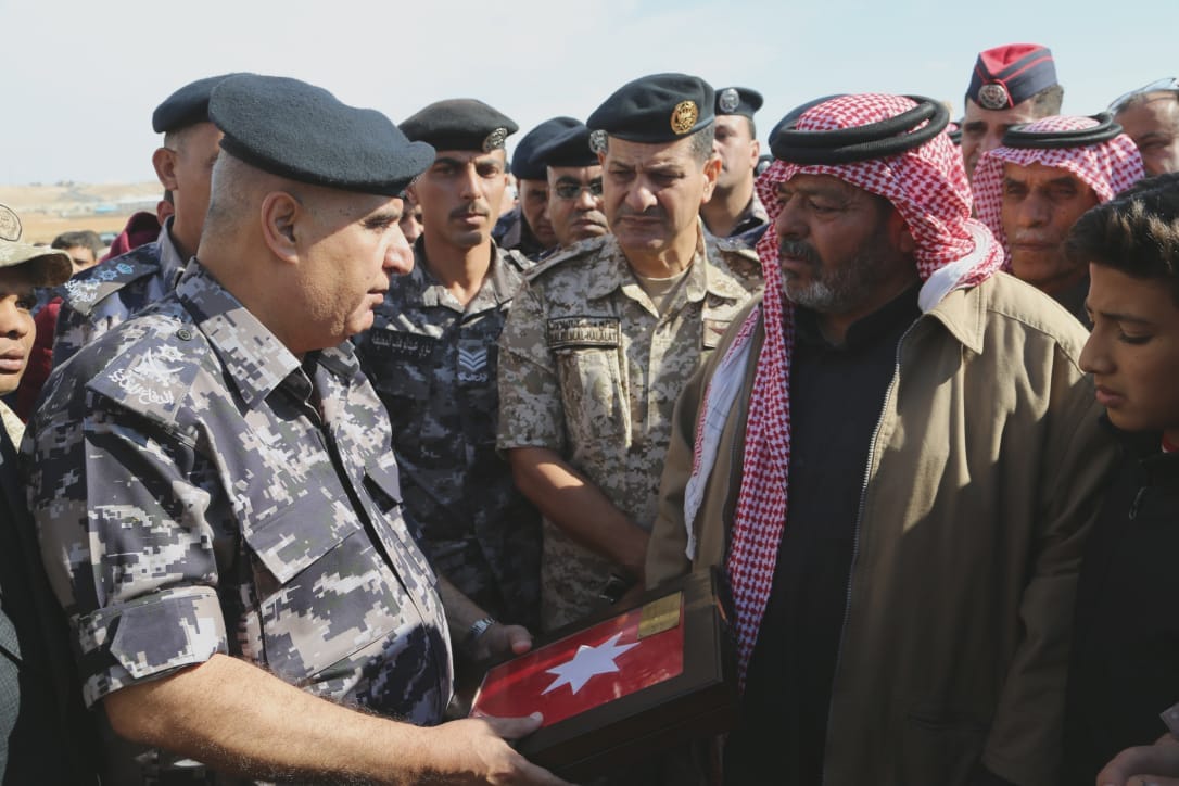 وسلم اللواء البزايعة العلم الأردني لوالد الشهيد الجبور مؤكداً أن الشهيد سيبقى رمزاً للبطولة، خالداً مع الشهداء الذين افتدوا الوطن بدمائهم الزكية.